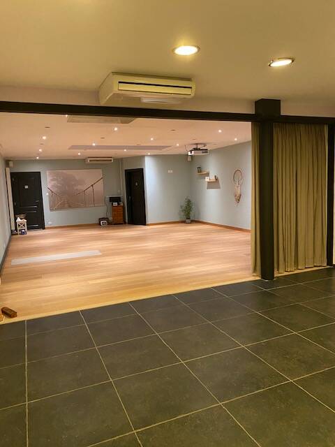 Sinds heden kan je ons zaaltje huren voor leuke workshops, lessen of andere activiteiten. Het zaaltje werd recent uitgebreid waardoor er plaats is tot 20 personen voor een yogales. Bovendien is er ook een gezellige ontvangst ruimte met een grote houten tafel om te verbinden in groep. Verder is er een proper toilet aanwezig, een mini keukentje met afwasbak, waterkoker, theeglaasjes en thermoskan, klapstoelen, beamer, yoga props en flipover (papier en stiften zelf te voorzien).